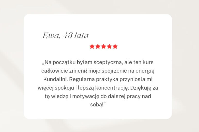 Odkrycie Kundalini całkowicie odmieniło moje życie. Dziś pomagam innym odnaleźć ścieżkę do swojego prawdziwego "JA". Pragniesz odzyskać harmonię i wewnętrzną siłę?